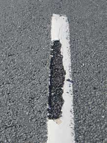 Например, старая, хорошо сохранившаяся разметка нанесена краской, а новую разметку необходимо нанести термопластиком. В такой ситуации в большинстве случаев необходимо полное удаление старой разметки. Механическим способом выполнить эту работу практически невозможно, и единственным удобным способом является гидравлическое удаление разметки, которое позволяет удалить старый материал и придать поверхности необходимую шероховатость без ее разрушения. Пропуск этой технологической операции приводит к нарушению межслойной адгезии и отслоению вновь нанесенного материала (рис. 3).